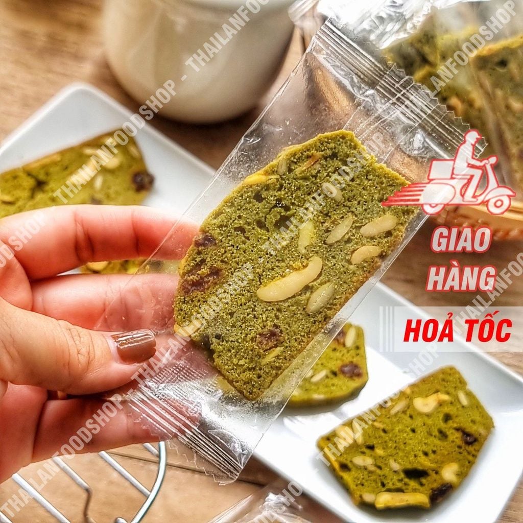 💟 Nguyên liệu bao gồm bột nguyên cám, bột Matcha và các loại hạt dinh dưỡng (hạnh nhân, hạt điều, nho khô,...)