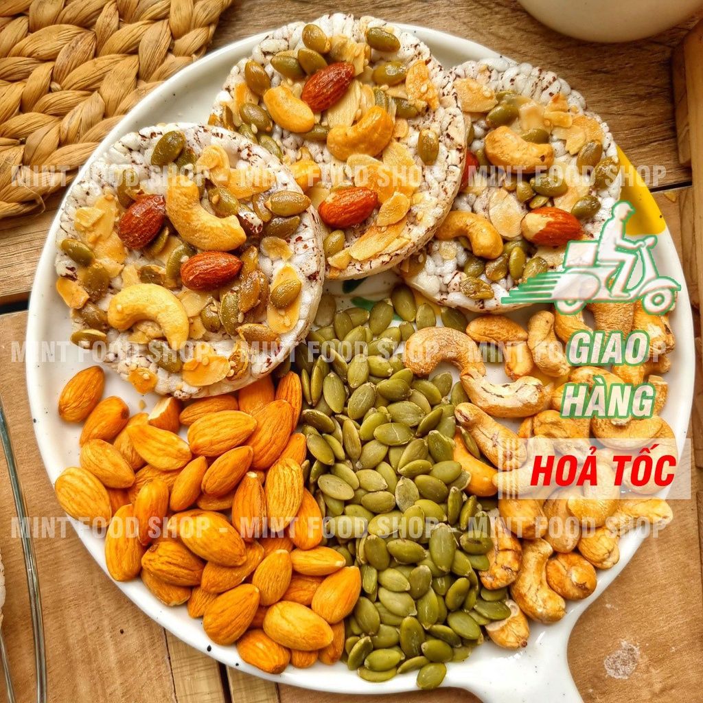 🍍🍍🍍 BÁNH NỔ GẠO LỨT (CỐM GẠO LỨT) MIX HẠT DINH DƯỠNG (BÁNH HEALTHY SIÊU HOT) - Phần đế bánh là cốm gạo lứt giòn rụm, xốp mềm phía trên là các loại hạt dinh dưỡng giòn tan, bùi béo, dậy mùi thơm, vị ngọt rất nhẹ từ mật ong - 100% Không đường, Không bơ béo, mấy chị em ăn mà không lo về cân nặng đâu, người kiêng đường dùng được luôn ạ.