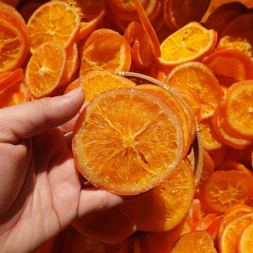 😍 Miếng cam vẫn dẻo thơm ngọt thanh có vị the rất nhẹ từ vỏ cam mà lại rất tốt cho sức khỏe, để ngoài được 1 tháng sẽ sậm màu không bị hư, để trong ngăn mát màu sẽ tươi đẹp hơi dẻo cứng chút vì hơi lạnh nhưng khi để ngoài sẻ dẻo bình thường ngon lại nhé.