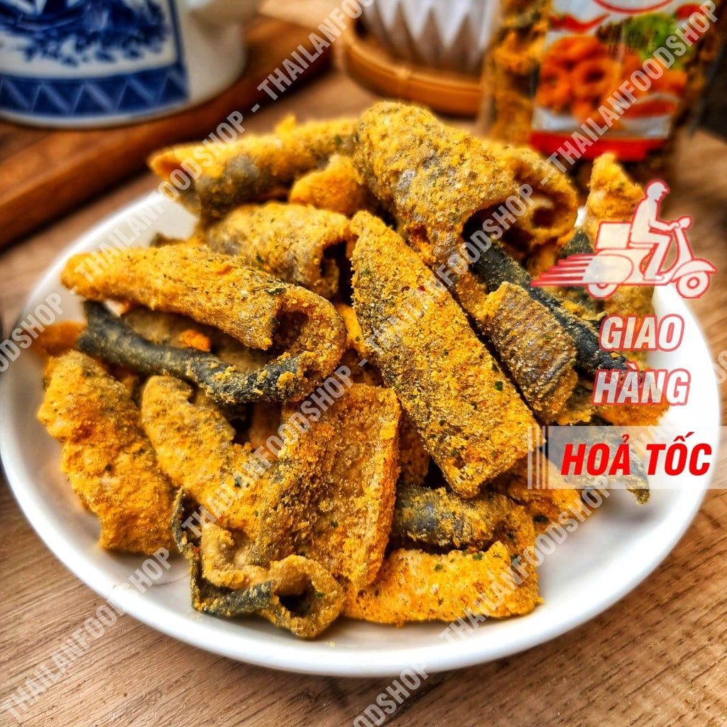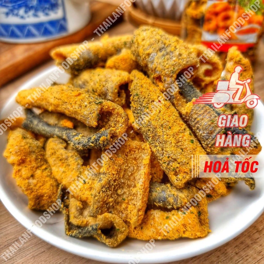 🔥 Da cá dày được chiên giòn sau đó được phủ bằng lòng đỏ trứng muối.