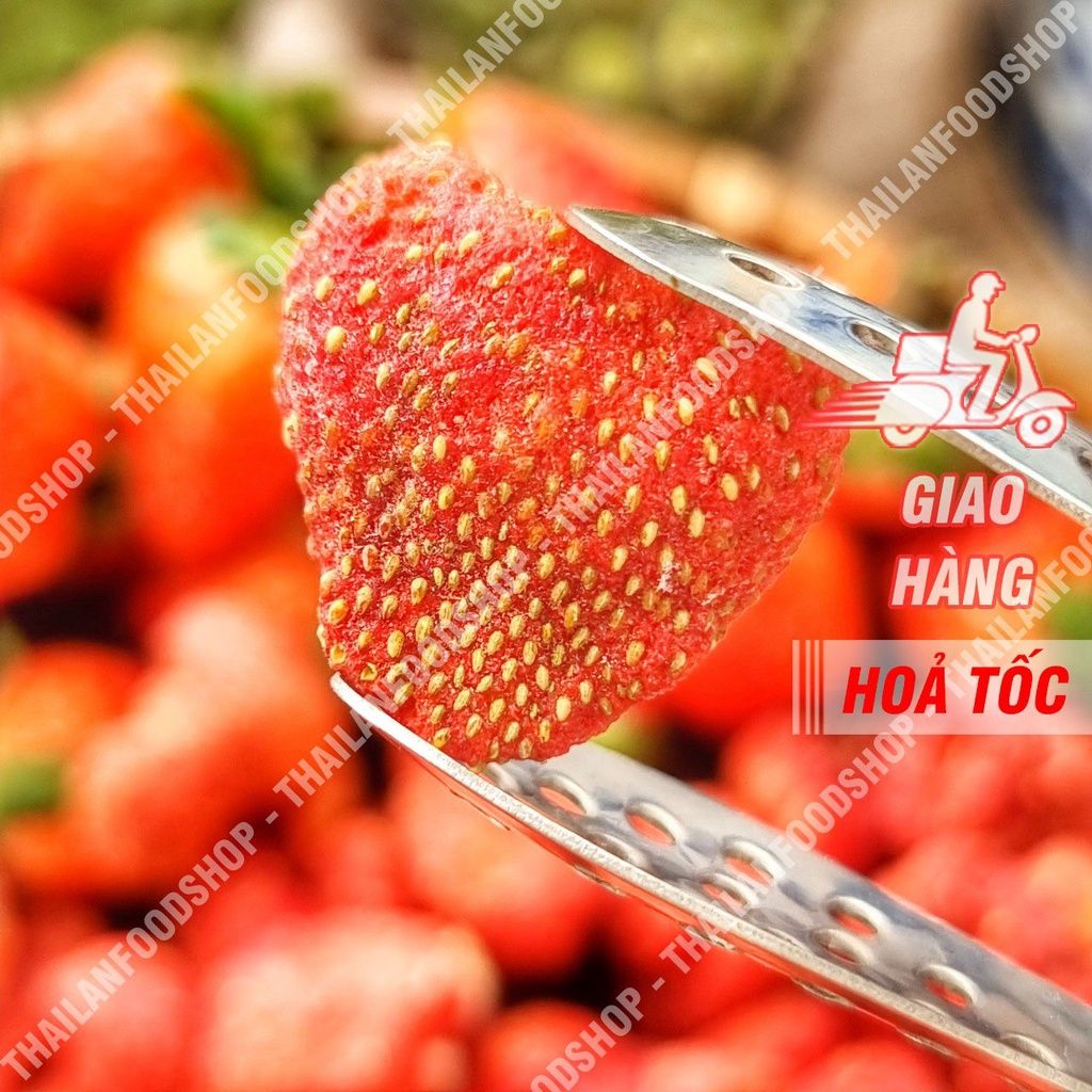 🍓🍓🍓 DÂU TÂY SẤY THĂNG HOA (Dâu Tây Sấy Đông Khô) Nguyên Liệu Làm Bánh, Làm Kẹo Giá Tốt - Dâu sấy lạnh nguyên trái, thành phẩm có màu đỏ hồng bắt mắt & hương thơm quyến rũ của dâu tây, chua đúng vị, độ ngọt nhẹ, khi ăn từng quả dâu tây sấy thăng hoa sẽ tan dần trong miệng chua ngọt khó cưỡng, cực kì thơm.