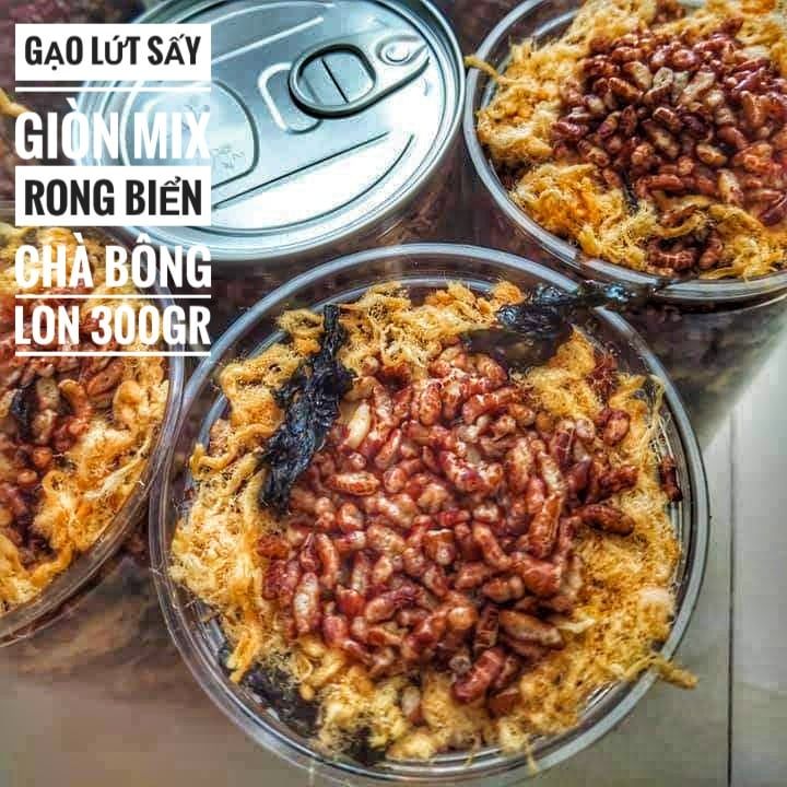 Gạo Lứt Sấy Giòn Mix Rong Biển & Chà Bông Ăn Liền Lon 300gr & Lon 100gr