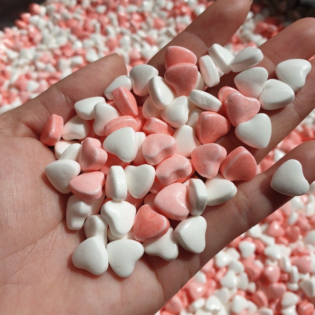 ⭐️⭐️⭐️ KẸO TRÁI TIM - Bên trong kẹo là một màu trắng sữa ngọt ngào, bọc bên ngoài là lớp áo mỏng các màu sắc dễ thương với 2 màu trắng và hồng