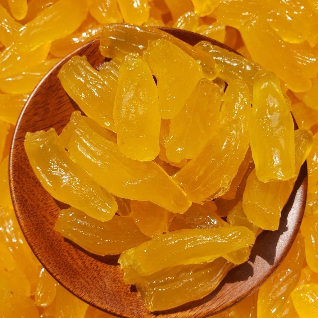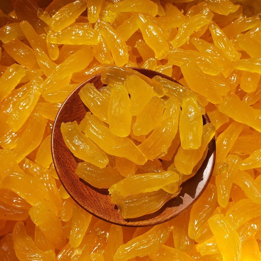➡️ Mứt khoai sâm được sấy từng miếng nhỏ bằng ngón tay , vàng ươm hấp dẫn rất dễ gây nghiện vì độ ngọt thanh nhẹ nhàng và độ bùi mà không loại củ sấy dẻo nào có được.