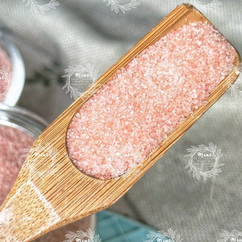 💦 Tẩy tế bào chết: lấy một lượng muối hồng cần thiết cho nhu cầu sử dụng vào một hộp đựng, đổ thêm một ít dầu thực vật tuỳ theo làn da và sở thích (dầu jojoba, dầu hạnh nhân, dầu dừa…), có thể cho thêm một vài giọt tinh dầu vào hỗn hợp. Sau đó xoa một ít hỗn hợp lên mặt và chà nhẹ theo hướng vòng tròn từ trong ra ngoài. Rửa mặt lại bằng nước ấm.