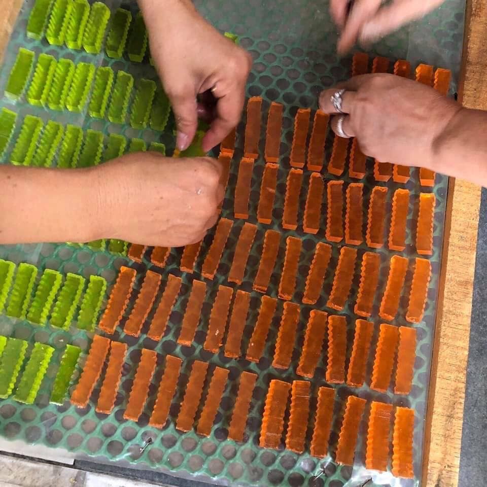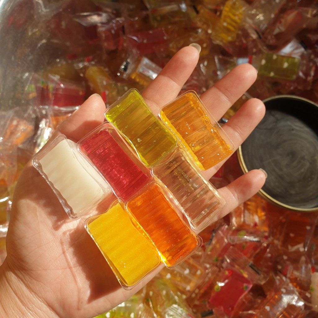 Mứt rau câu dẻo được làm vị tự nhiên từ hương vị trái cây - Với độ dẻo dai thơm ngon sần sậc, mềm nhẹ, cực ki ngon, đặc biệt vị ngọt cực kỳ thanh nhẹ, không bị gắt