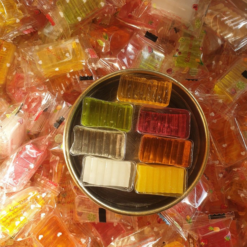 Mứt rau câu dẻo được mix đủ màu đủ vị, màu sắc cực đẹp mắt. Thích hợp dùng làm quà biếu tặng hay nhâm nhi cùng trà.