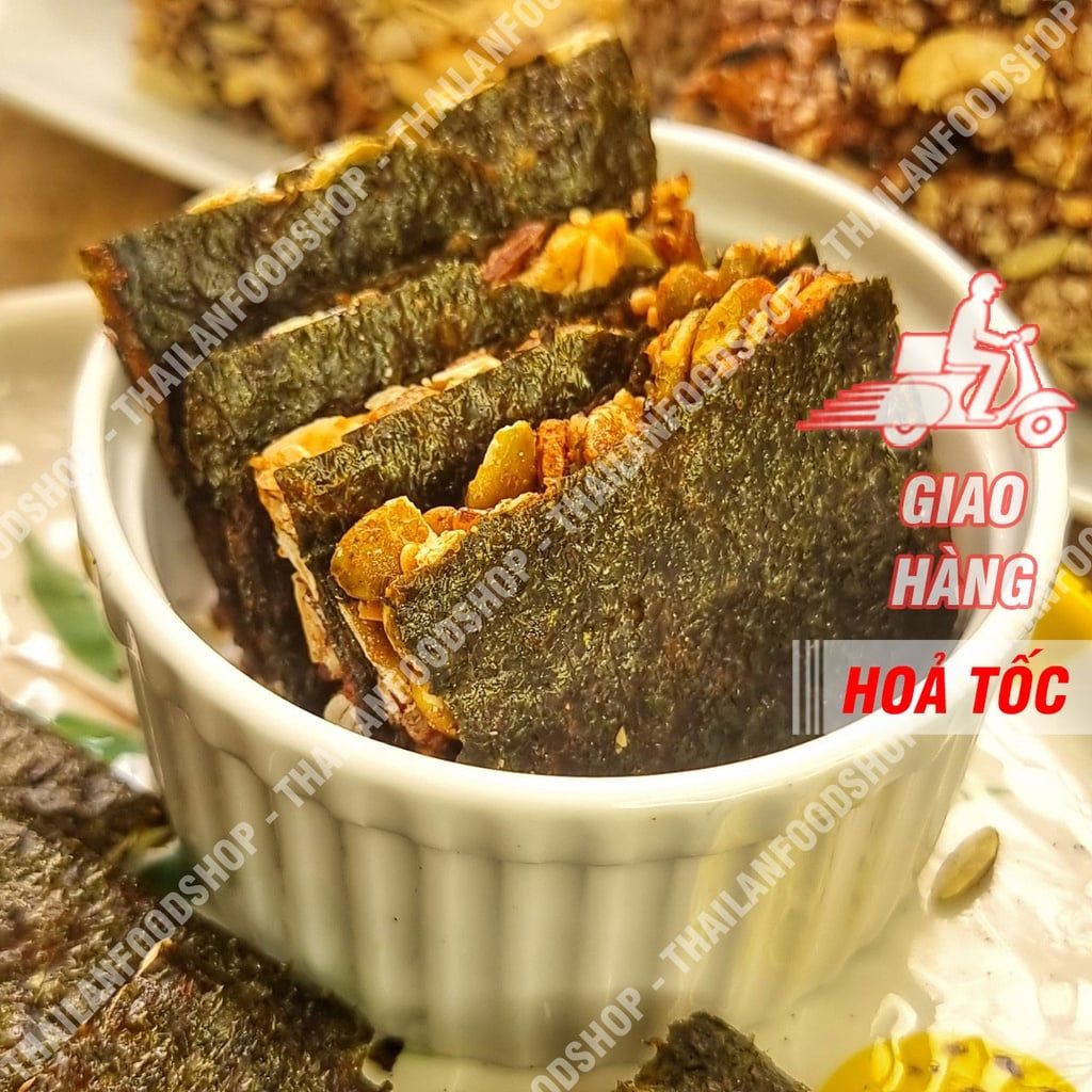 😍 Rong biển nguyên miếng cực kỳ giòn, kẹp phía trong hạt dinh dưỡng thơm ngon với giá trị dinh dưỡng cao, bao gồm: Hạnh nhân lát, hạt điều, hạt bí , mè trắng, mè đen , hạt chia, gạo lức.