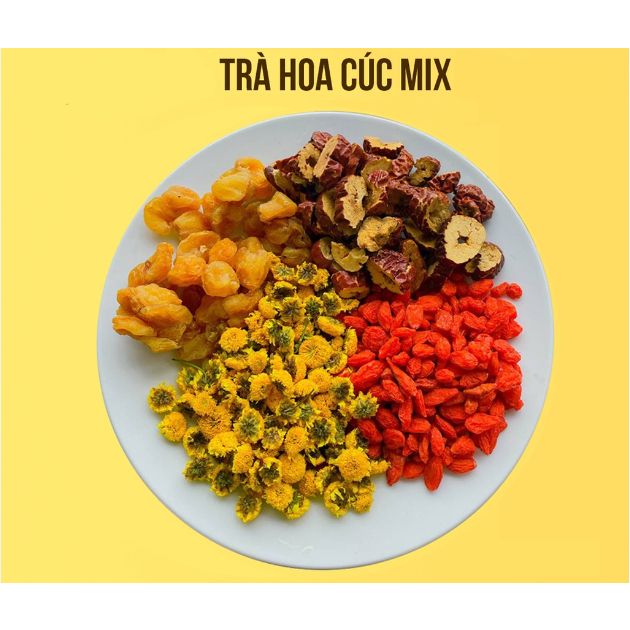 💟💟💟 TRÀ HOA CÚC MIX VỊ (Hoàng Cúc, Táo Đỏ, Kỷ Tử, Long Nhãn, Đường Phèn) - Trà hoa cúc là một trong những loại trà dễ uống nhất, nên khi kết hợp cùng Táo Đỏ, Kỷ Tử, Long Nhãn, tạo hết hương vị khá thơm ngon dễ uống, vị thanh thanh nhẹ nhàng không kén người dùng. Bên cạnh đó đây cũng là loại trà hoa giúp cải thiện các vấn đề về làn da, sức khỏe tinh thần và giảm các triệu chứng của bệnh cảm rất hiệu quả.