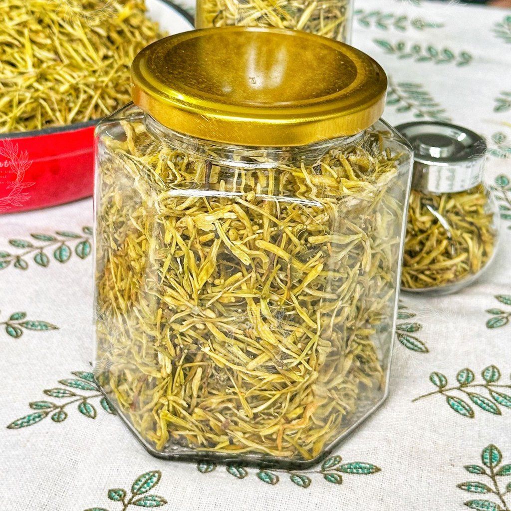 ➡️ Pha Trà: Hãm 5gr Trà Kim Ngân Hoa với 200ml nước 90 độ. Chờ 5 - 7 phút là có thể dùng được, bạn có thể pha 2-3 lần như các loại trà khác, cho đến khi nước nhạt. Nếu dùng lạnh thì lọc xác trà và lá, lấy phần nước, thêm đá hoặc bảo quản lạnh và thưởng thức.